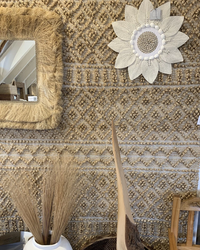 ALFOMBRA CONFECCIONADA EN YUTE Y ALGODON CON DISEÑO EN NUDOS.