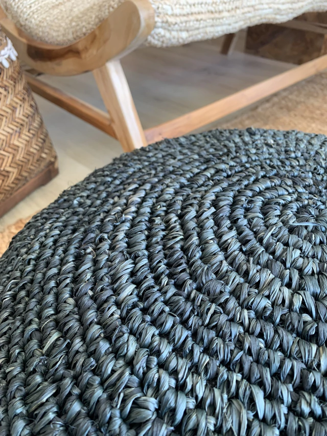 PUFF CONFECCIONADO ARTESENALMENTE EN FIBRA NATURAL DE RAFIA.