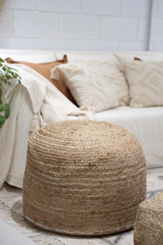 PUFF TEJIDO EN YUTE NATURAL CON RELLENO DE TELGOPOR.